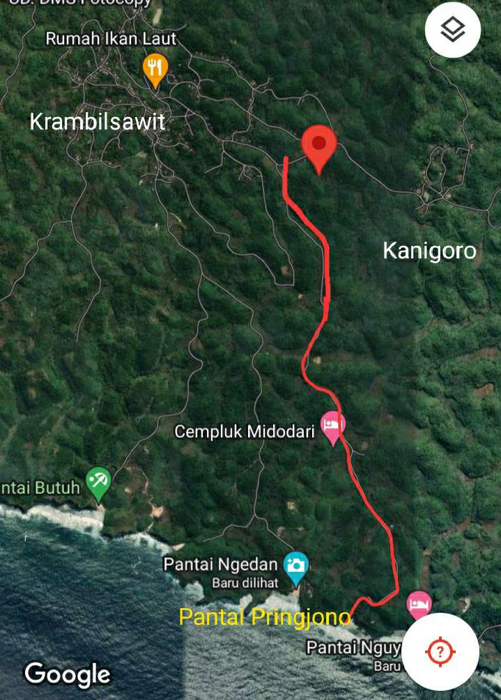 Untuk ke pantai pringjono Bisa Mengikuti seperti gambar peta berikut :